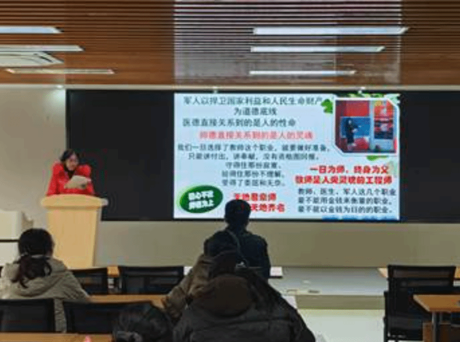 Professor Dai Liling firmly believes that the original aspiration reflects teachers' love and responsibility toward education and determines their educational philosophy and methods; it is an important guarantee for upholding professional integrity and moral standards. Teacher ethics are the professional moral standards and behavior norms that teachers should possess, influencing the behavior and character of both teachers and students. Professor Dai's report generously shared her teaching experiences and insights with the young teachers present, providing much reflection and inspiration on how to deeply integrate ideological and political elements into courses and promote the improvement of teachers' professional skills.
