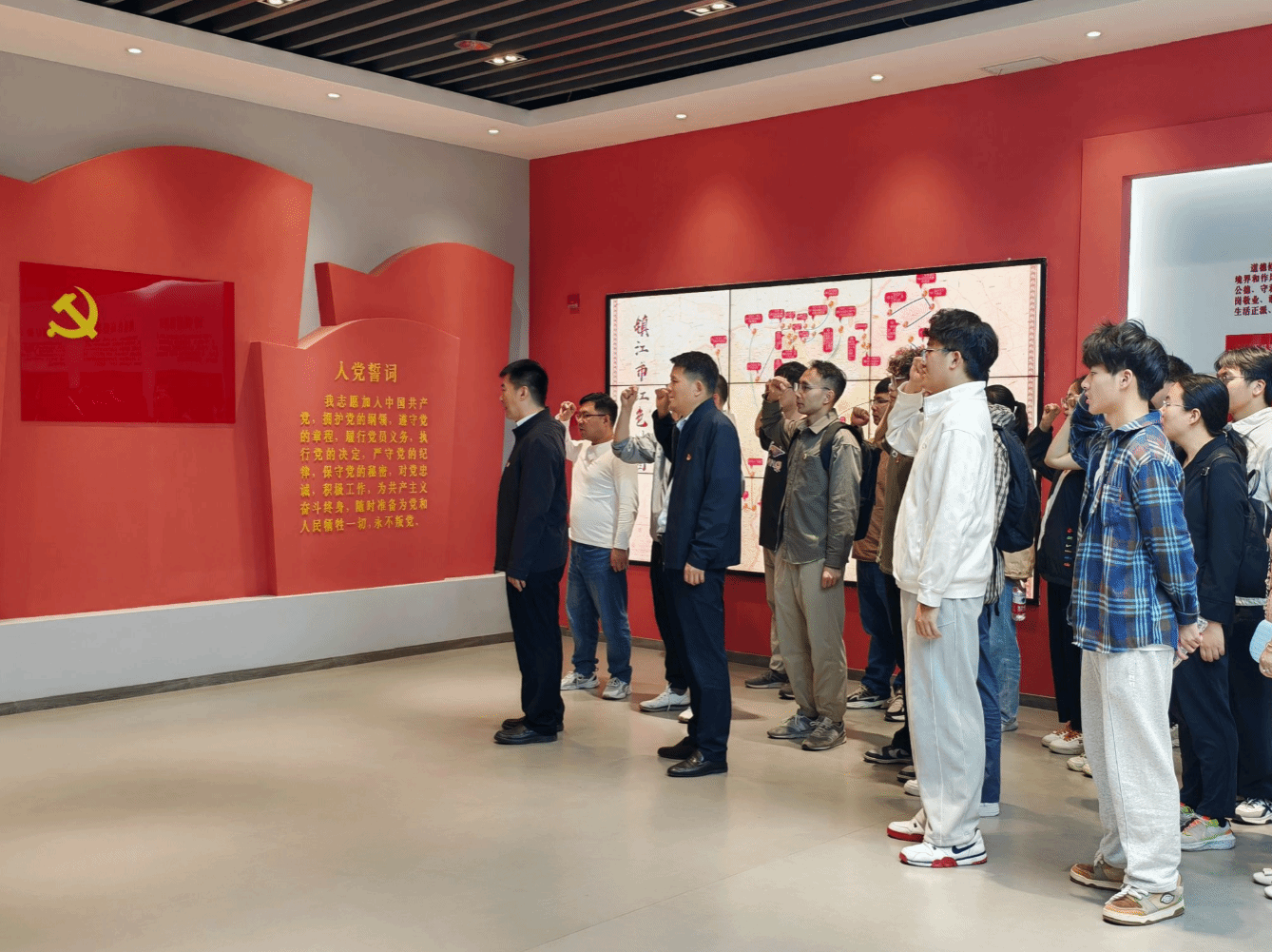On April 29, the School of Energy and Power Engineering organized a visit to the Zhenjiang Municipal Party School to carry out party spirit education and warning education activities. The school leadership team, members of the Party Committee, and Party members from the Faculty Party Branches of the New Energy Department and Energy Storage Department, as well as the Undergraduate Student Party Branch, participated together.